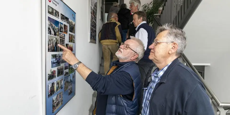 Möglich macht das eine Fotoausstellung, die unter dem Motto „Erinnern und Entdecken“ im Treppenhaus des Rathauses zu einem Streifzug durch die vielfältige Geschichte der Riedstädter Städtepartnerschaften einlädt und dort die nächsten Monate zu sehen sein soll.